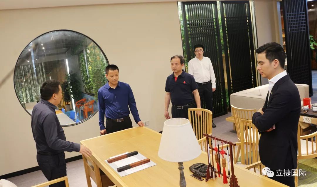 ▲徐道利副局長一行在葉光慶董事長等領(lǐng)導(dǎo)陪同下參觀企業(yè)辦公環(huán)境以及鑫立捷家具展廳